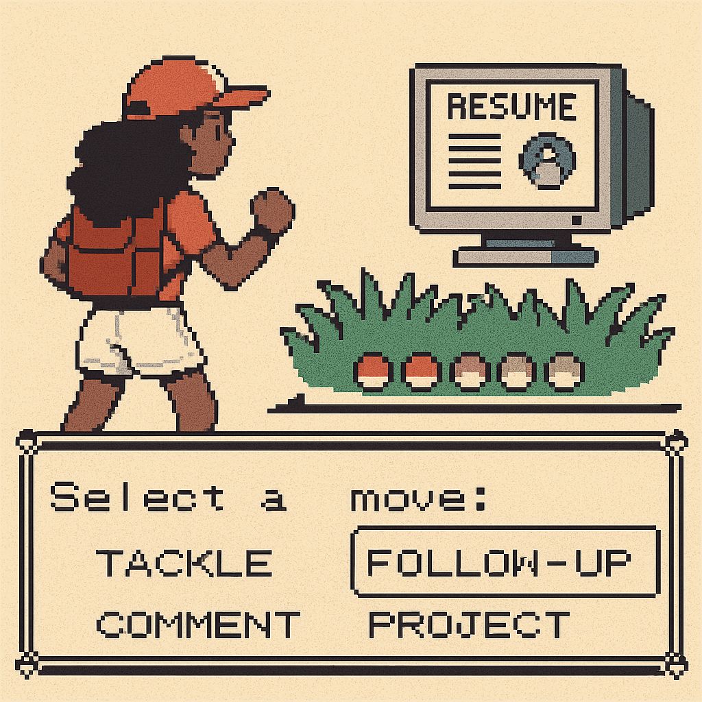 This is the unknown territory. You try different strategies — reaching out directly to a hiring manager, building a project that shows your skills, or asking someone in your network for a referral. In Pokémon, “tall grass” is where you encounter wild battles and rare finds. In job hunting, it’s where you might face rejection, but also where you unlock the best opportunities.